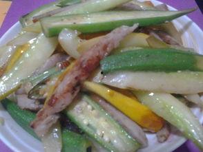 2. 炒秋葵:将秋葵切片,与肉片、青椒等一起炒制,口感鲜嫩,营养丰富。